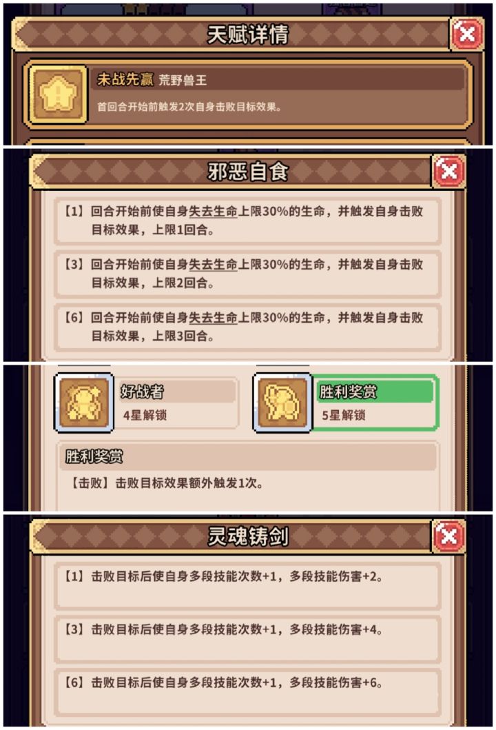 配队上呢前期推荐:水晶菇+魂能法师+遗言龙女装备水晶菇需要带上元素套魂能法师和遗言龙女需要装备如下图(空位可以自己搭配)支援搭配如下:天赋:遗言流的基础就是遗言龙女的专属天赋至少要刷到一个专属天赋,搭配装备和支援就可以达成一回合触发七次自身战败(遗言龙女五大触发五次,魂能法师技能可以触发两次)的遗言流基础!!!就可以做到两回合叠满999防御!度过前期非常轻松后期可以参考我的这套阻碍自爆