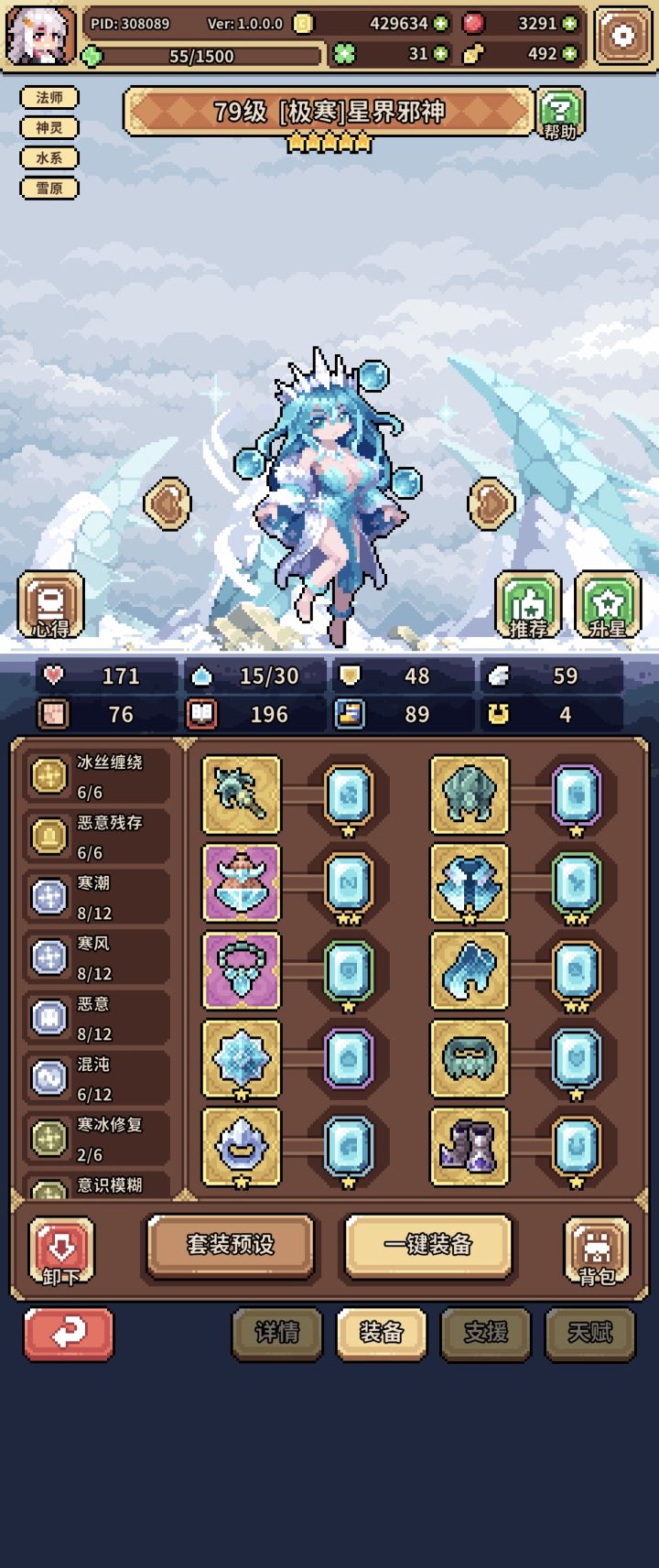 萌新第一次玩,这是第三天了,这些都是抄作业抄的,冰邪神基本上没伤害是这么回事