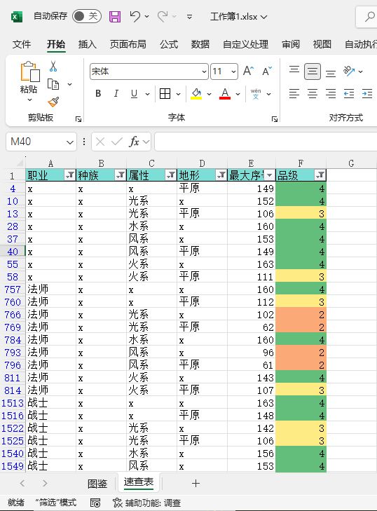 只需要在速查表筛选里把你所有的词条以及x勾上,其他没有的词条的全部取消勾选,就能看到词条组合的最低品级,品级数字越小越好Excel或者WPS都可用这个已经很傻瓜了,至于要不要维护看我能玩多久百度云盘链接/s/11MofPLFEwnOU2TTllwHQ1w?pwd=dz82