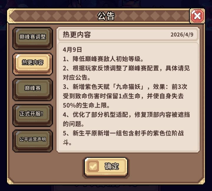 1.削巅峰赛难度,会在几小时内逐步调整2.紫色阶的低配九命猫妖总结:一直被骂的两个毒点都优化了,这年头,真能听玩家话的厂商不多,就事论事,凉屋这波操作态度上还真不错,再等等就能看到具体成效如何了希望幻想少女公会越来越好