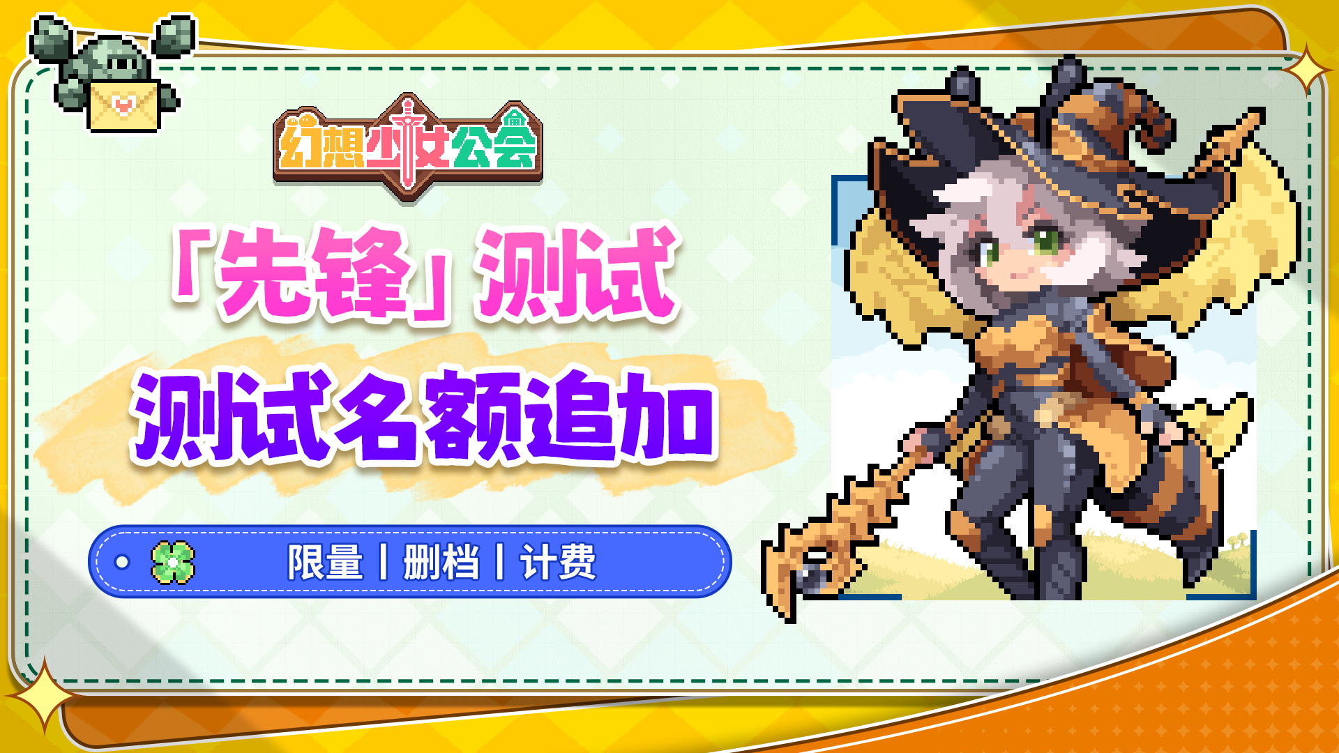 会长大人好,「先锋」测试现已开启!快前往领取测试资格,打开异世界的大门,邂逅魔物少女,开启全新的冒险吧! ▍ 测试信息测试时间:2025年12月17日中午12:00-2025年12月31日中午12:00测试类型:删档计费限量测试测试平台:安卓测试渠道:TapTap测试人数:5000人 ▍ 参与方式12月17日中午12:00,会长大人可进入《幻想少女公会》游戏详情页参与测试。成功注
