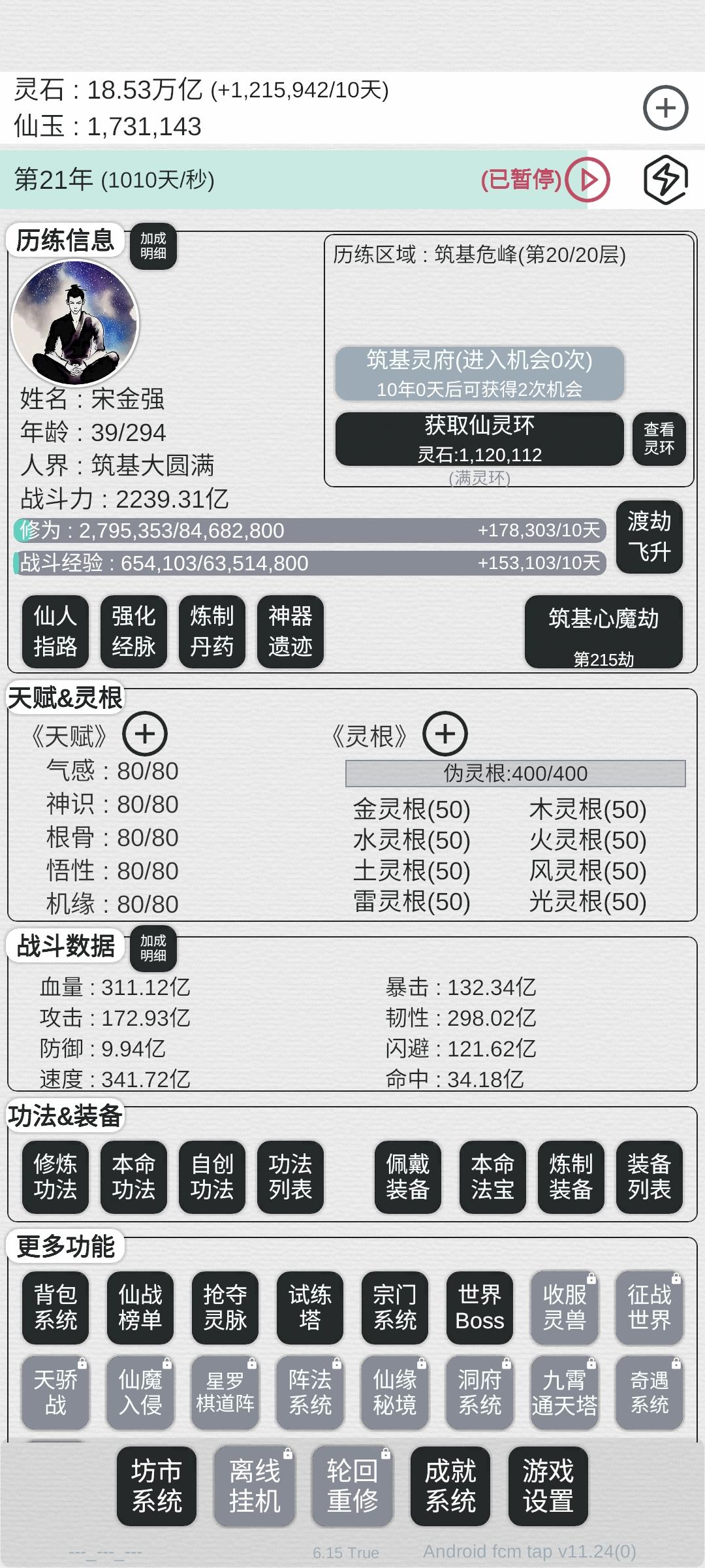太好玩了,差不多等于无限流。可以轮回变强!!!越玩越上头,新手可以每个境界打满在突破下一个境界!!