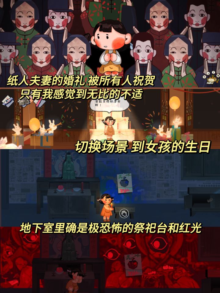 📍游戏名:《喜丧》🧩平台:Steam(已上线)-💔表面的喜不算喜,奶奶说,她想回家。-💫第一次被一款游戏的立意高度震撼到🥲故事展现了老旧想法对奶奶的影响,一生都在被迫完成所谓的任务,离世后也不能回到家乡落叶归根,令人唏嘘🍂 💫小女孩囡囡回老家参加奶奶的葬礼,但因为还小,无法理解奶奶的离去,却因为意外穿越到过去,了解了奶奶来到村子里的原因⚰️ 💫游戏画风以中式水墨🖊️和水彩🫧为主,