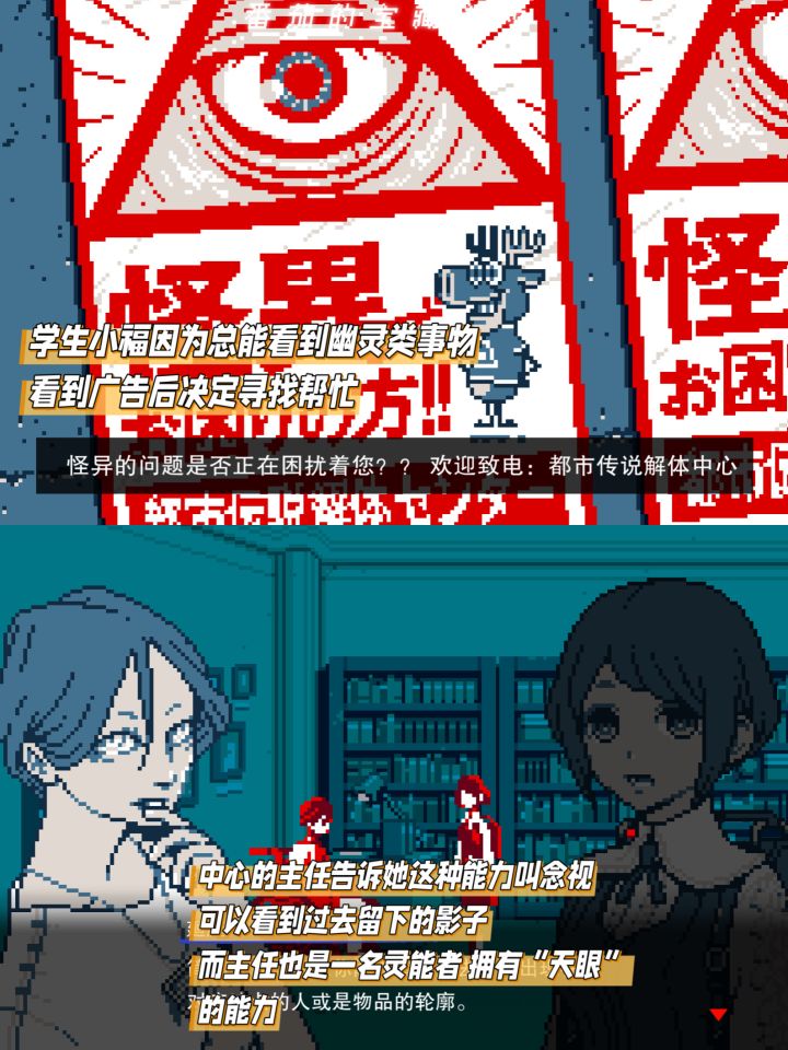 🎮游戏名称:都市传说解体中心💌支持平台:steam探索都市传说的微恐推理游戏来啦❗️推理难度是宝宝巴士级别的,可以不用担心太难,大胆入❗️游戏里你就是主角福来蓟,跟着拥有天眼能力的中心主任廻屋涉,一起解决各种离奇古怪的都市传说委托🌟每个故事都来自网上那些让人毛骨悚然的都市传说,搭配迷幻的像素画风,氛围感直接拉满,仿佛置身于一个鬼魅妖异的世界你得在现场仔仔细细地搜证,还要去社交媒体上挖线索