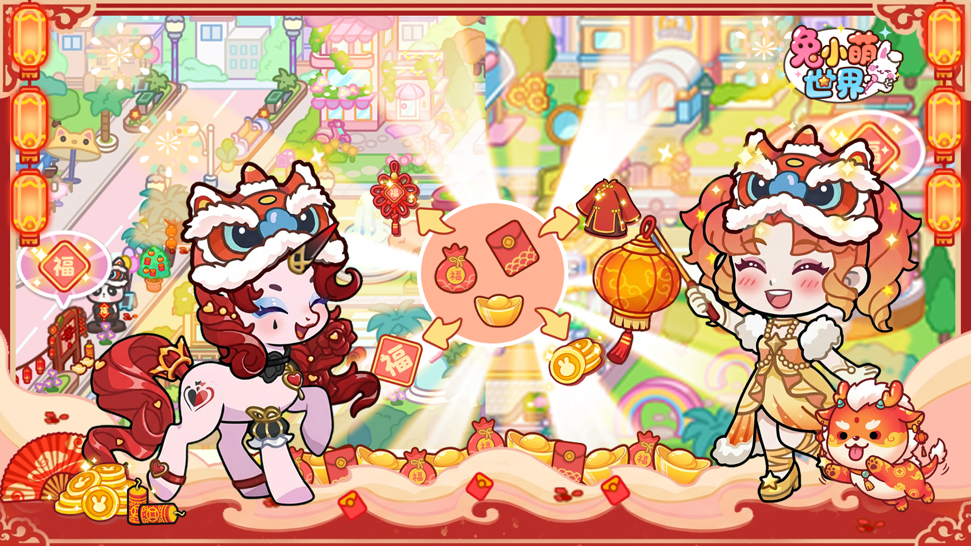 亲爱的小萌友们:🧨红灯笼挂满街巷,小镇福气已蓄满!《兔小萌世界》新春特别活动即将上线!免费抽服饰、集福气兑好礼,解锁专属新春好运,开启一年好福气~1、新春转盘活动⏰️活动时间:2026年2月5日 10:00 — 2026年3月5日 10:00活动期间,每日可获得1次免费抽奖机会+5次广告抽奖机会。有机会抽取付费服饰、海量TUT币、动作等好礼~2、春节街道限时开放⏰️活动时间:2026年