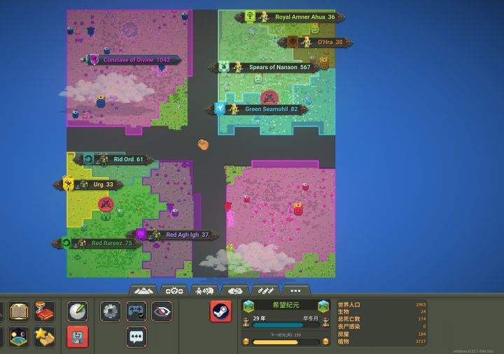《WorldBox - God Simulator》是一款玩法自由的沙盒上帝模拟器游戏,在这个游戏里,玩家将要扮演一位可以自由创建自己的世界,如同圣经中的上帝一般创世纪,指定属于自己的规则,或者哪个种族惹你不开心的你也能对他们降下神罚,亦或是多创造几个种族在电脑前观看他们的发展与斗争,俗称电子斗蛐蛐。