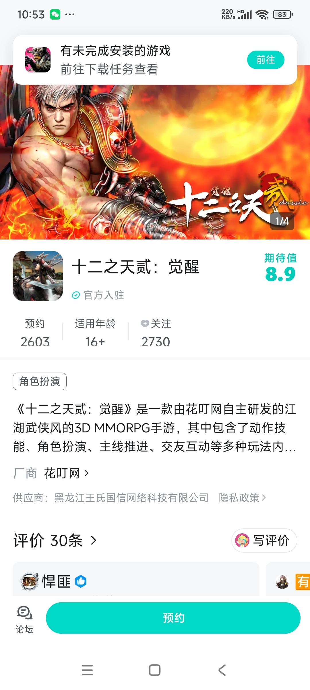 游戏类型:角色扮演、动作、冒险、武侠、MMORPG、游戏介绍:《十二之天贰:觉醒》是一款由花叮网自主研发的江湖武侠风的3D MMORPG手游,其中包含了动作技能、角色扮演、主线推进、交友互动等多种玩法内容为一体。感兴趣的小伙伴可以点击评论区上方游戏链接的【预约】按钮,预约成功后便能第一时间掌握最新的游戏测试相关资讯。#发现好游戏 #游戏安利 #游戏推荐