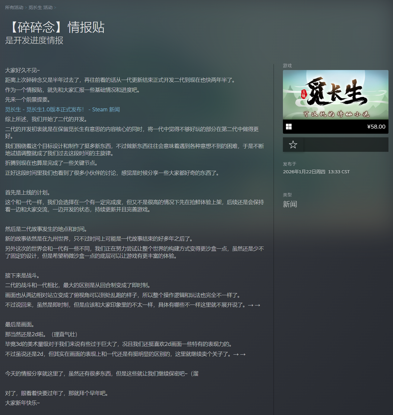 游戏名:觅长生 游戏平台:Steam 原价:58 #pc游戏安利局