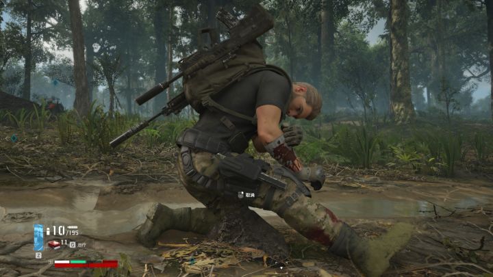 我非常喜欢的一点是拟真化的设定,本作中角色受伤会立刻反馈在行动上,玩家能清晰的看到角色拖着受伤的腿一瘸一拐的尽力奔跑,治疗伤势时和《孤岛惊魂》系列类似,角色会拿出绷带等物品进行操作。