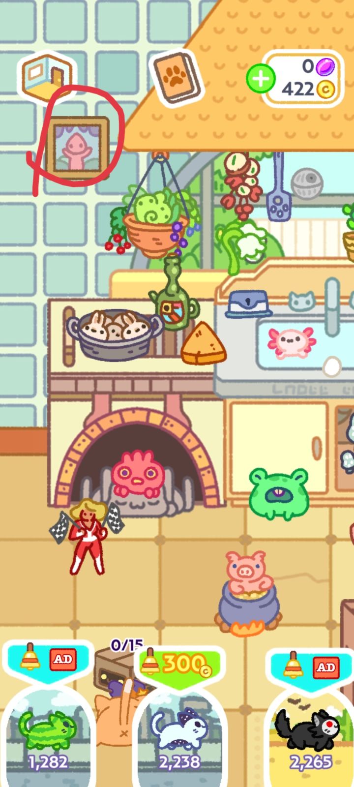 点击相框 猫粮 加上桌子上的标记 顶上有实心点就是空着的意思在桌子上的九宫格那里进行解密 摆成最后那张照片的样子
