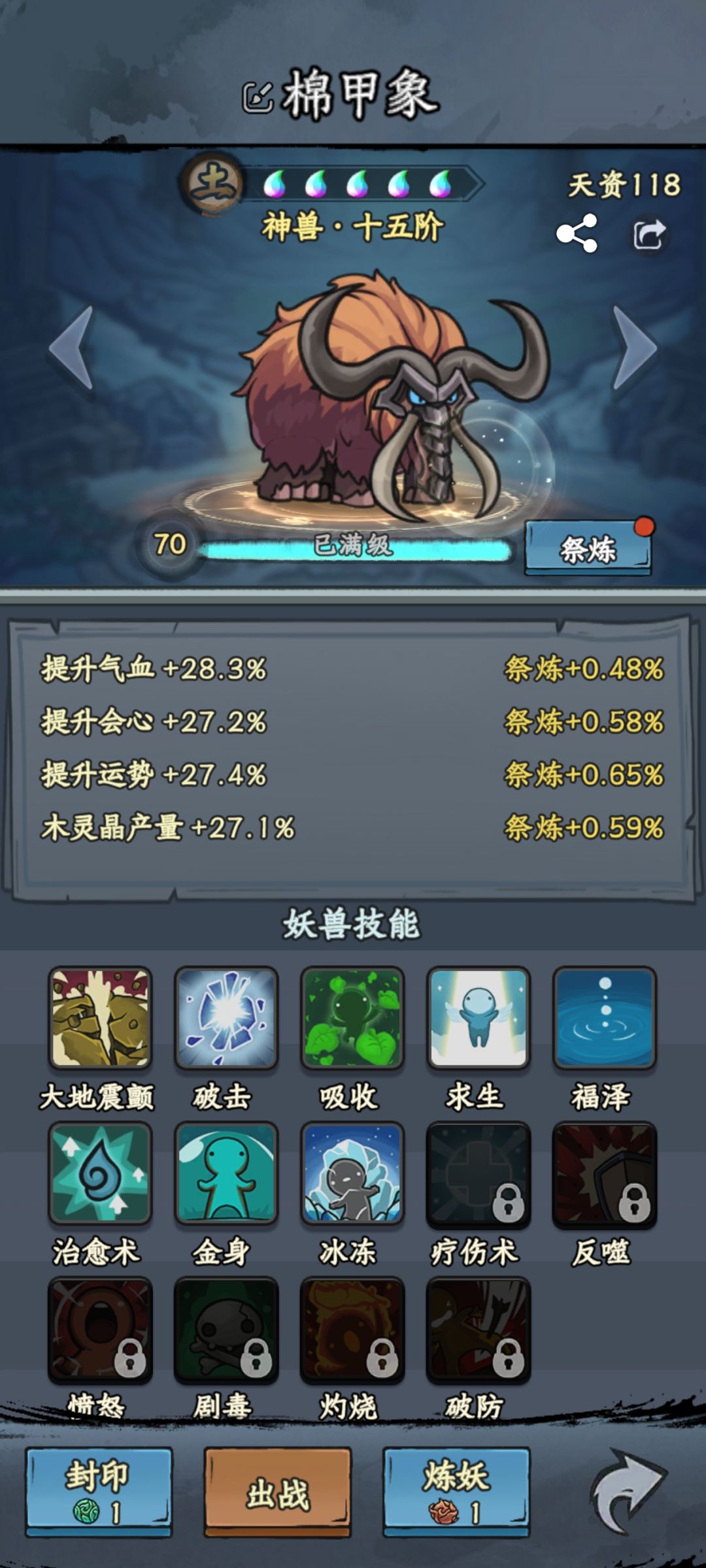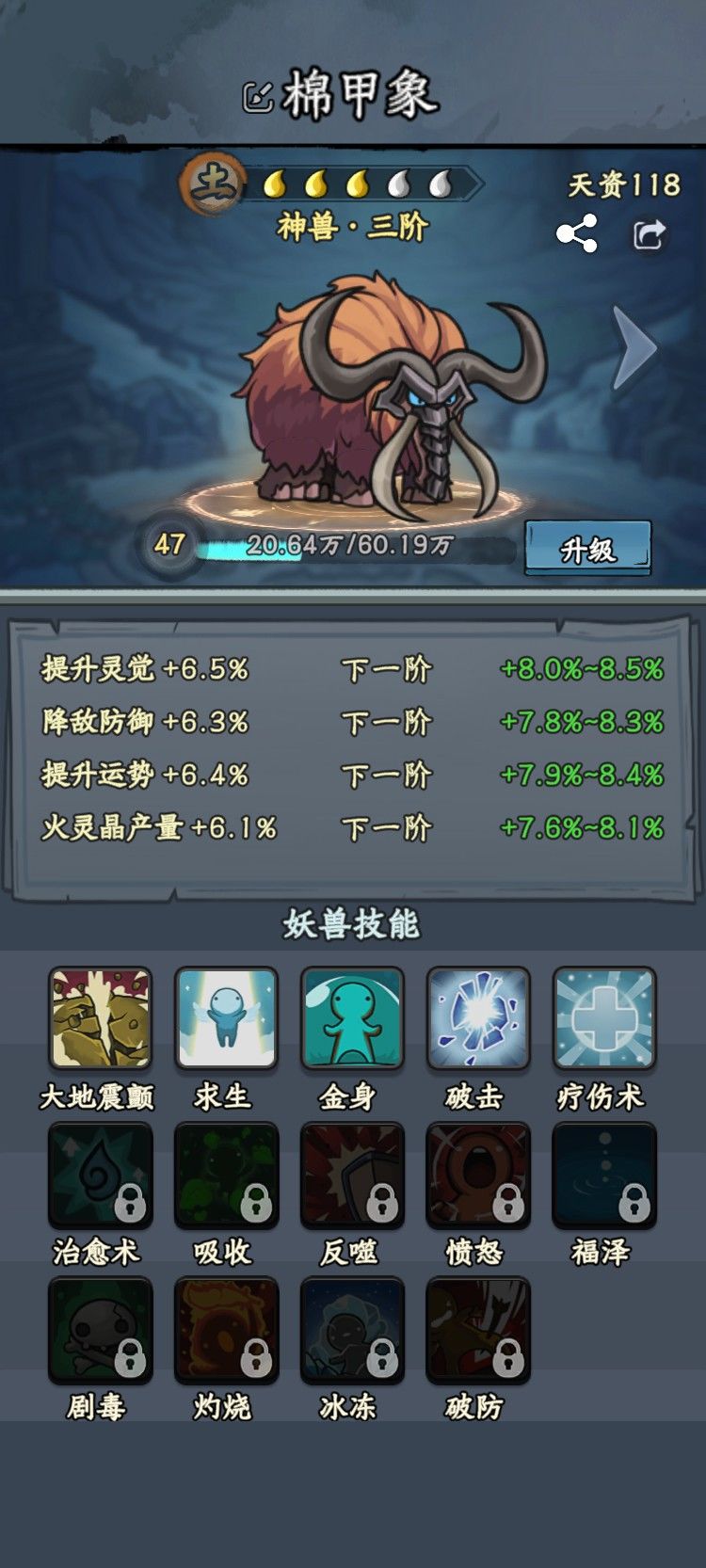 棉甲象,挂机妖宠,综合评分80