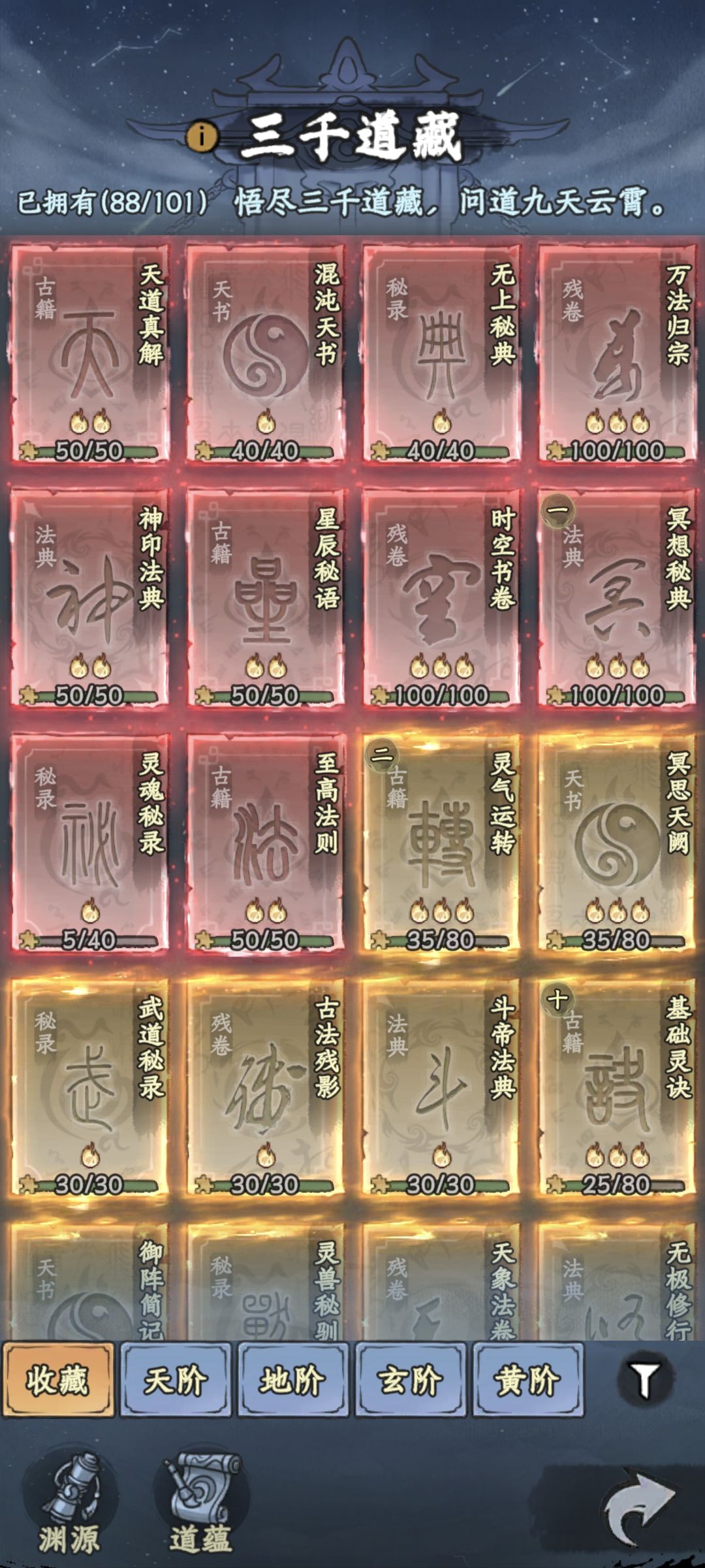 各位大佬们好,我是萌新宿命[表情_比心] 简单给各位介绍一下大梦道心录闪避流派的道藏培养方向,以及培养过程中需要避的一些坑,字字珠玑,全是过来人的血泪 整个三千道藏系统里最值得投入培养的就是增加运势的道藏(萌新玩家可以优先升级红色加经验的道藏),运势和暴击闪避属性挂钩,提高运势可以直接提高二者的属性,特别是其中的暴击属性,以至于后期不携带任何暴击词条的装备和功法,暴击也可以很高,闪避属性则需要