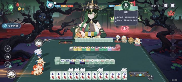 给大家说一下规则每回合摸4张,打4张总共可以摸40张牌和牌可以和4次,每次都计算分数40张牌摸完,最后计算双方的总分还有技能可以用,变牌之类的总之看起来挺有乐子的还有bgm,我在看番数牌型,突然听懂bgm唱的啥词儿