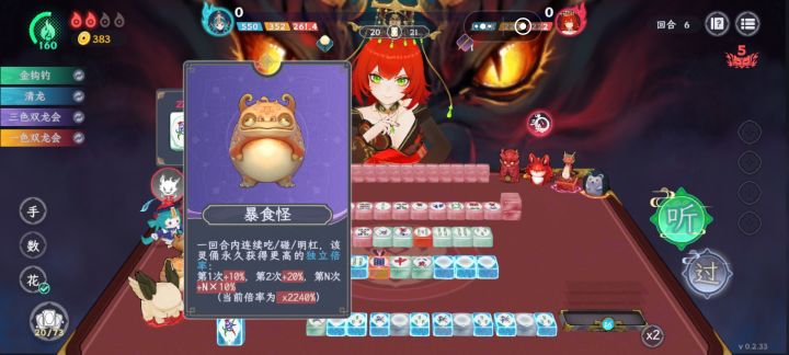 用初始人物最弱的馋鬼研究了几盘,基本算是入门了,这游戏核心还是肉鸽,借用了麻将的一些规则。