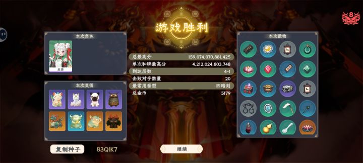 之前用马面打了好几次难度7都没打过,可能还是没研究好,但是用满宝一次就过了7和8 ,这几个灵俑太强了,靠吃,碰,杠,刷倍率,吃和碰完还能反回手牌,一直刷刷刷刷