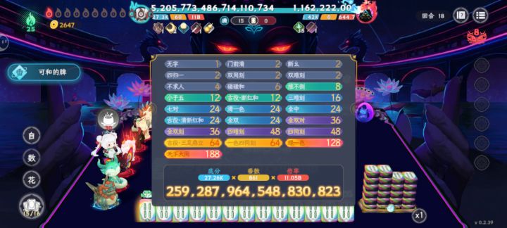 第一次用孟婆,直接打的难度8,感觉强度好高。运气不算特别好,前期没拿到叠倍率的灵俑,而且不知道孟婆奶茶技能和筒子有关,选做了条子,还有这个分数。就是手点的累。