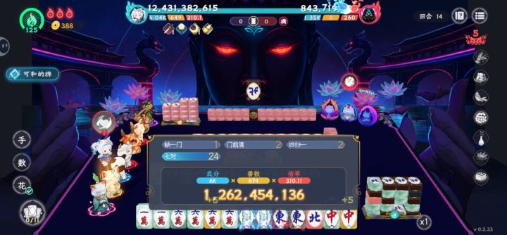 有详解的在后边(DLC版本内容修正施工中)总分首先这是比大小游戏。总分=底分×番数×倍率×独立倍率×和牌数。综合来说。独立倍率≥和牌数>底分>倍率>番数。角色从解锁易到难来说。马面·阿骐御三家里最易上手的,最强角色之一。擅长生成复制牌,被动手牌有六对即七对番型奖励灵俑。3级即好用,6级质变。tips:最优牌型天下大同。初期会魂力不足,先做全单/双对断红和二次方。不需高分时是