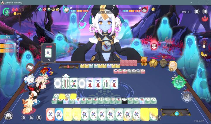 如图,说是打三色强,实际上半天也敲不起来几分毕竟胡牌就那么多次还不一定胡满。十三幺13面听基本想胡多少胡多少,而且你游有个bug就是字牌也会敲,这不负片巴哥吗,数字牌怎么办就用技能转,你只需要管字牌