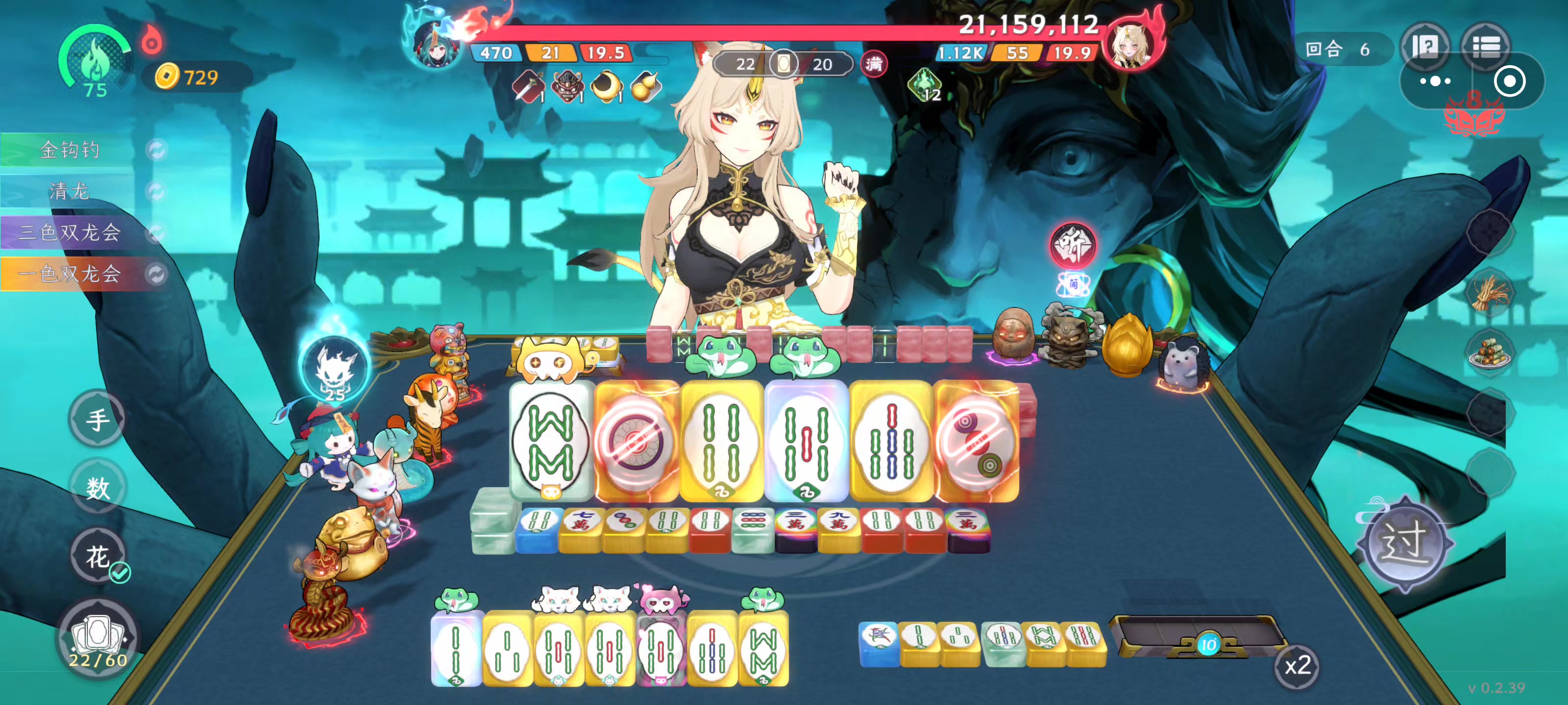如图,说是打三色强,实际上半天也敲不起来几分毕竟胡牌就那么多次还不一定胡满。十三幺13面听基本想胡多少胡多少,而且你游有个bug就是字牌也会敲,这不负片巴哥吗,数字牌怎么办就用技能转,你只需要管字牌