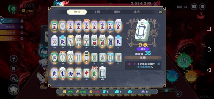 如图,说是打三色强,实际上半天也敲不起来几分毕竟胡牌就那么多次还不一定胡满。十三幺13面听基本想胡多少胡多少,而且你游有个bug就是字牌也会敲,这不负片巴哥吗,数字牌怎么办就用技能转,你只需要管字牌
