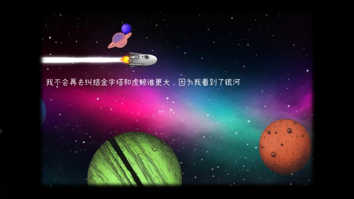 火箭飞上天,梦想完成,在空中飞出心率图的时候。此刻,火箭又代表什么呢,是与父亲的约定,还是未完成的梦想,抑或是向往的自由,这些就有待玩家思考了。
