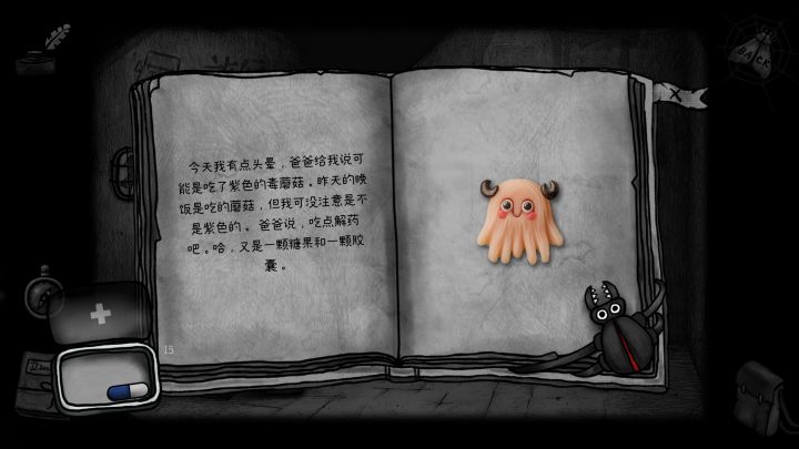 游戏最重要的收集道具,药丸和照片。每收集了一个药丸,就可以解锁一段日记,顺便可以翻看角色的故事。