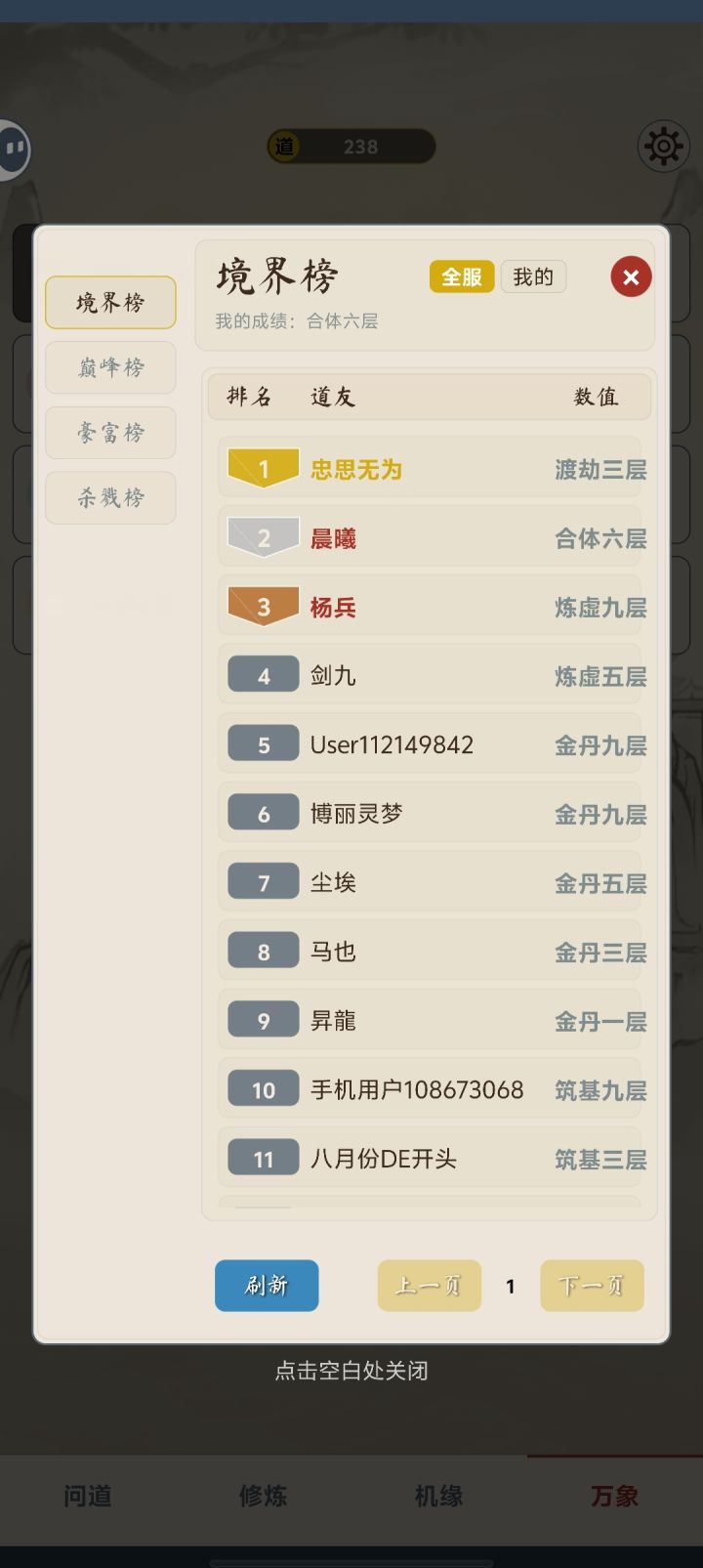 非常值得一玩的修仙(休闲)游戏哦,从1.0版本就开始玩了。刚开始有些bug,但是作者大大一直在更新,游戏体验已经提升很多了。希望可以再增加一些养成性的内容在里面,修成道祖了能做的事情能不能多一点?另外道侣能不能强力一点,随境界按百分比提升是不是更好,否则太鸡肋了,当然可以结伴多个道侣就更好了哈