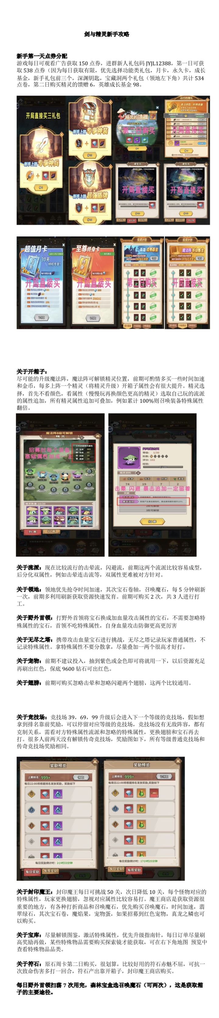新手点券分配游戏每日可观看广告获取150点券,进群新人礼包码JYJL12388,第一日可获取538点券(因为每日获取有限,优先选择功能类礼包,月卡,永久卡,成长基金,新手礼包前三个,深渊钥匙,宝藏洞两个礼包(领地左下角)共计534点卷,第二日购买精灵的馈赠6,英雄成长基金98。关于开箱子:尽可能的升级魔法阵,魔法阵可解锁精灵位置,前期可酌情多买一些时间加速和金币,每多上阵一个精灵(将精灵升级