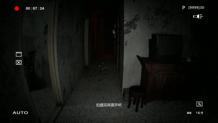 我个人觉得本作做得最出色的地方在于视觉部分,使用手电筒后的灯光光效,可能是因为手电老旧的原因,整体的光线并不算亮,只能照亮前方一个圆形范围,远处依旧是无法看清楚的漆黑一片,这样我们只能一点点向前摸索。有时还因为携带了需要拍摄的录像机,整体的镜头就有了更加明显的变化,夹杂了老式相机的画面感。这些小细节部分的设计都能明显地感受到制作组是花了很多心思在上面,并不是随便敷衍的。
