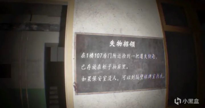 游戏中还包括了经典恐怖游戏所拥有的突脸环节以及追逐战等内容,并不一直只有单一相似的东西,能保证我们沉浸于恐怖氛围的情况下又不丧失游戏的新鲜感,每一个游戏阶段都能有新的体验。而其他的解密环节个人体验下来难度其实并不算高,游戏中设置的提示都很明显,像是在保安室门口旁边挂着的小黑板,就写了一些信息。而其他基本能进行交互的地方游戏也做了简洁的光标提示,保证了我们不会错过一些关键的道具。友情提示一下,本作中出现的许多高能都是无法避免的,所以请想要尝试游玩的玩家做好足够的心理准备,没有提前准备是真的挺吓人。