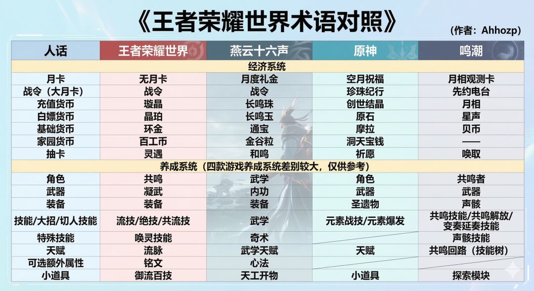 好玩的大世界游戏太多了,做了个名词对照表,方便感兴趣的玩家快速上手。 #王者荣耀世界4月10日上线 #王者荣耀世界