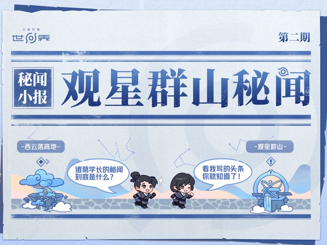 时间冲不散少年英气,作为昔日诸葛亮、周瑜学长的比试场地,观星台仍流传着许多学长们留下的秘闻~ 正巧秘闻社小编编写了《秘闻小报:观星群山篇》,[心动小镇_震惊]就让师姐带你品月华,习星术,在云台交错的机关之间,初窥当年的那场对决吧~[表情_暗中观察]#王者荣耀世界