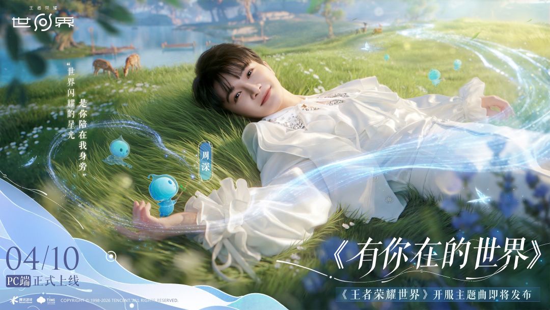 世界闪耀的星光,是你陪在我身旁。 从狭路相逢的对局,到与英雄并肩的世界,是因为有你在,这个世界才真正有了意义。 《王者荣耀世界》 PC 端预下载已开启、4月10日7:00开服,移动端4月见! 开服主题曲《有你在的世界》MV&同名专辑也将在4月10日正式发布。 携手小王的老朋友、王者荣耀品牌代言人、也是世界的新伙伴周深,一起奔向旅途的晴朗吧~ #王者荣耀世界预下载开启 #周深王者荣耀世界开服主题曲