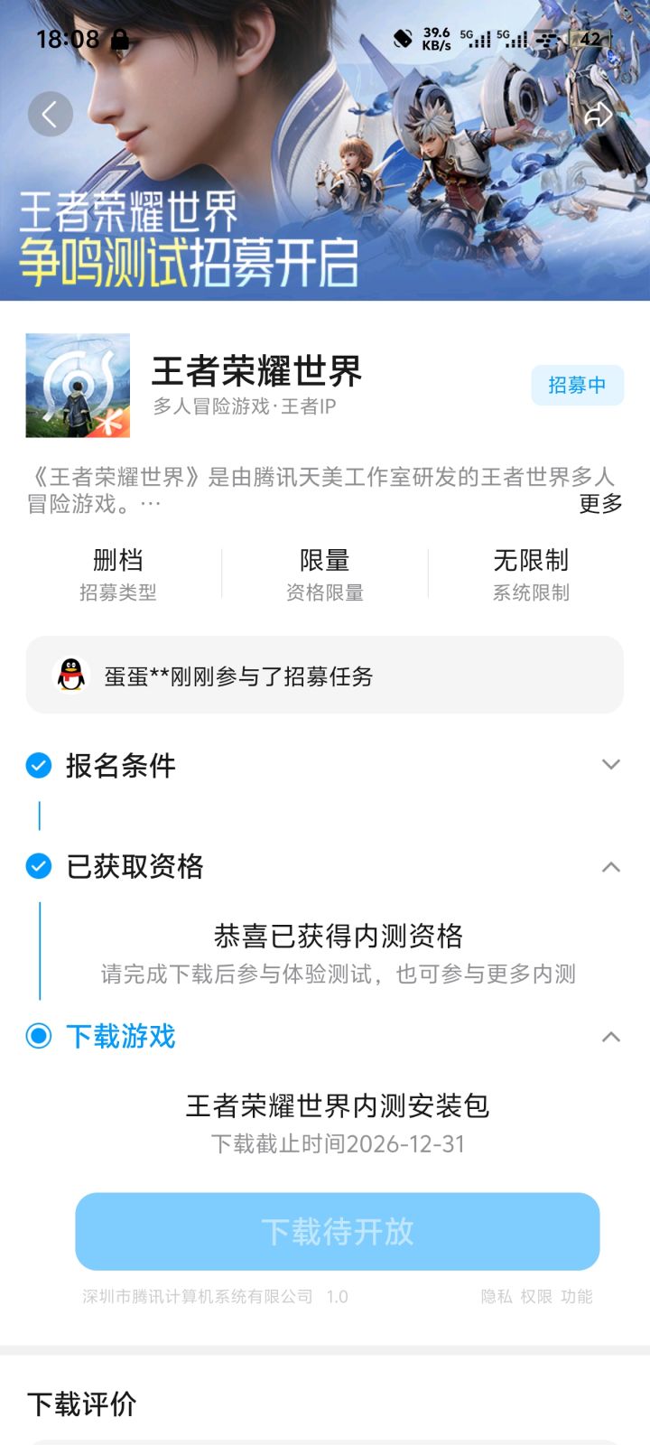 3月1日早上才看到,当时去qq还签署协议成功了,但是今天再进入却发现没有资格了,是因为签完了吗 但是我看不是还有追加活动节奏今天凌晨吗#王者荣耀世界定档4月 #王者荣耀世界