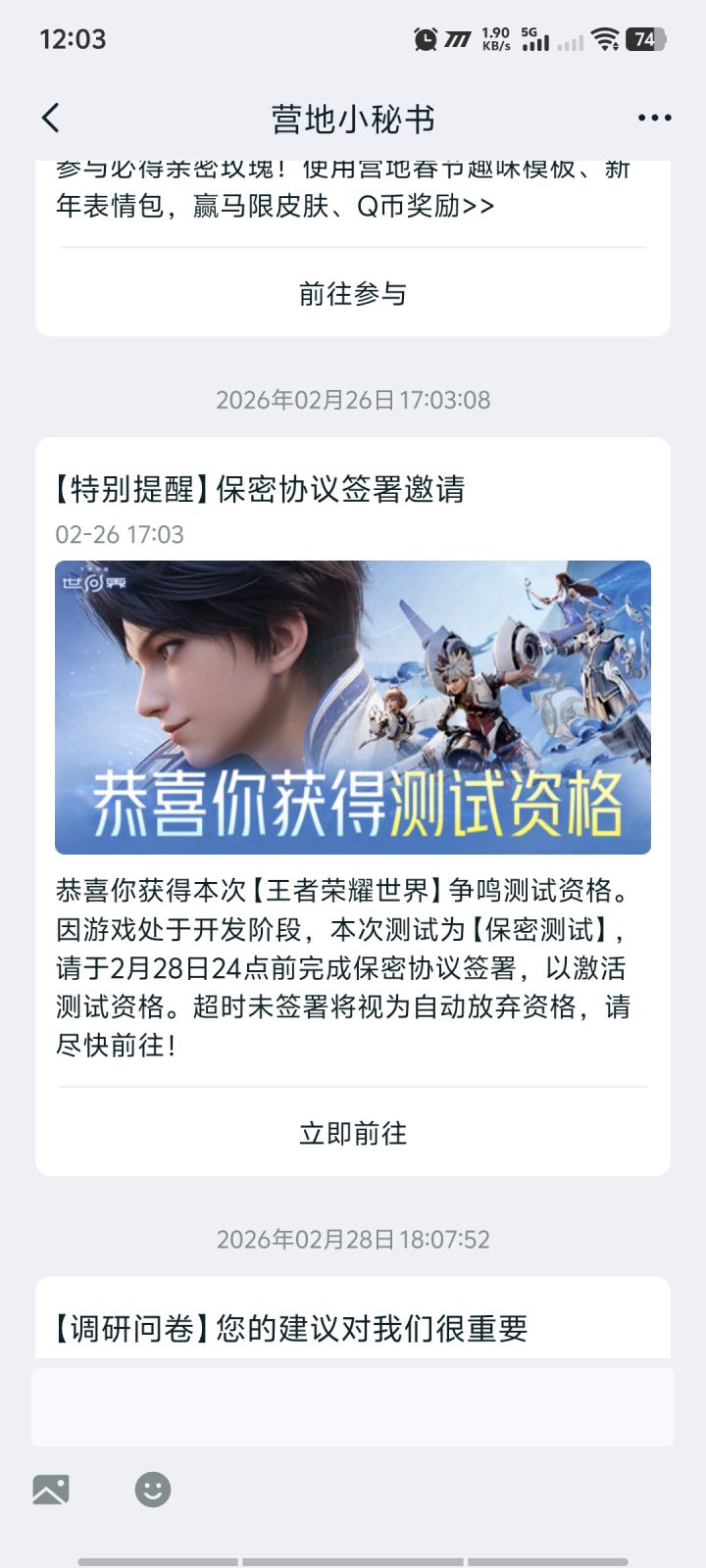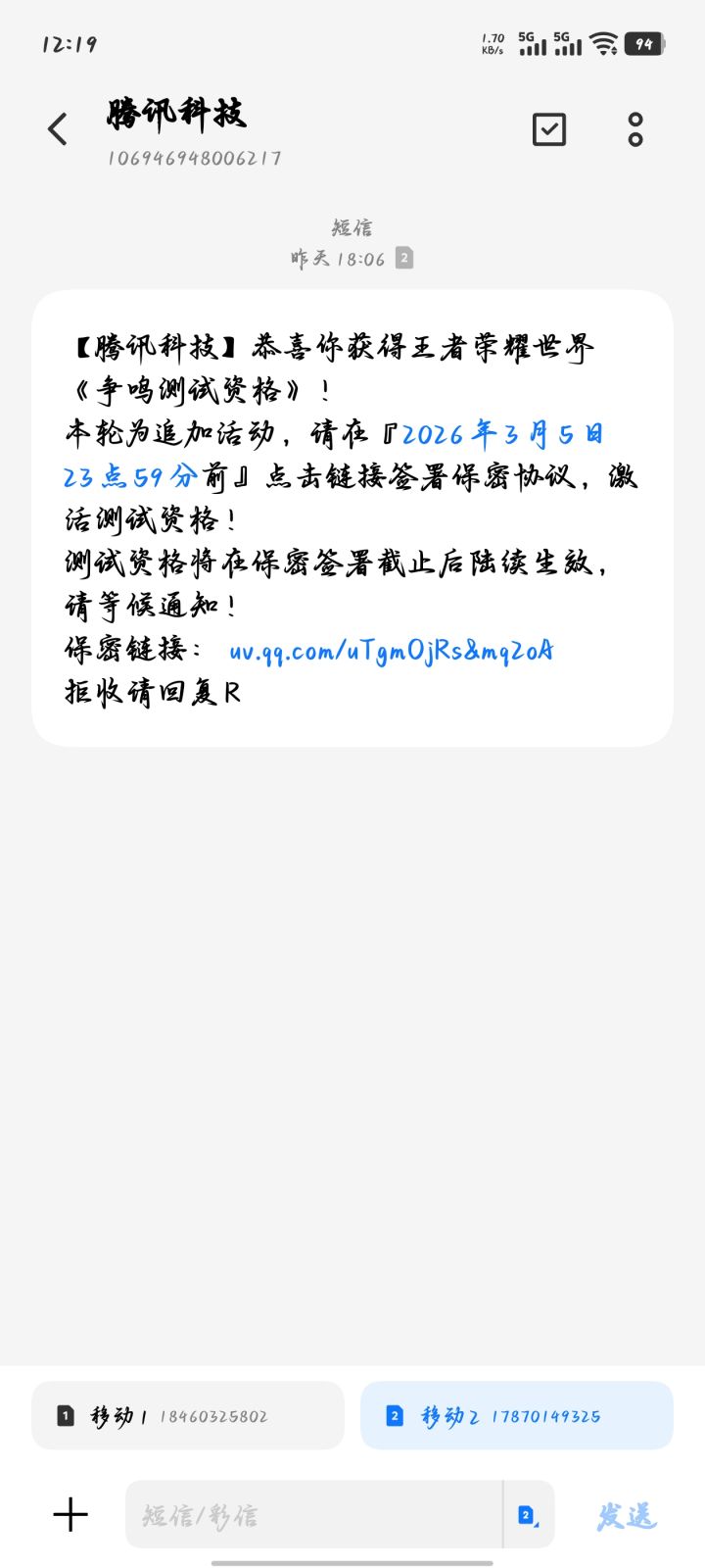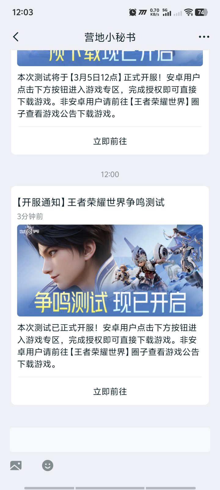 亲爱的元流之子,争鸣测试预下载已于3月4日 17:00开启,正式开测时间为3月5日 12:00。如您在预下载过程中遇见问题,请查看《争鸣测试预下载常见问题FAQ》。感谢您的理解和支持。本次测试为邀请测试,仅获得资格的玩家可以下载体验,感谢大家的理解与支持!#王者荣耀世界定档4月 #王者荣耀世界 【测试信息】测试预下载时间:3月4日17:00测试预计开启时间:3月5日12:00测试类型:本