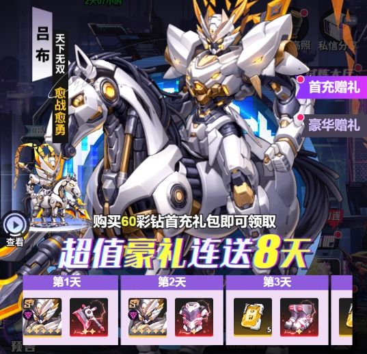 【七日登录活动】每天上线就可以白嫖3个S核心英雄-吕布;小氪6元,【首充赠礼】活动里面还可以再拿3个-吕布S核心英雄在前期无容置疑是所有玩家前期阵容的主力军~#游戏安利 #游戏攻略 #超维计划 #赛博朋克 #英雄介绍 #吕布