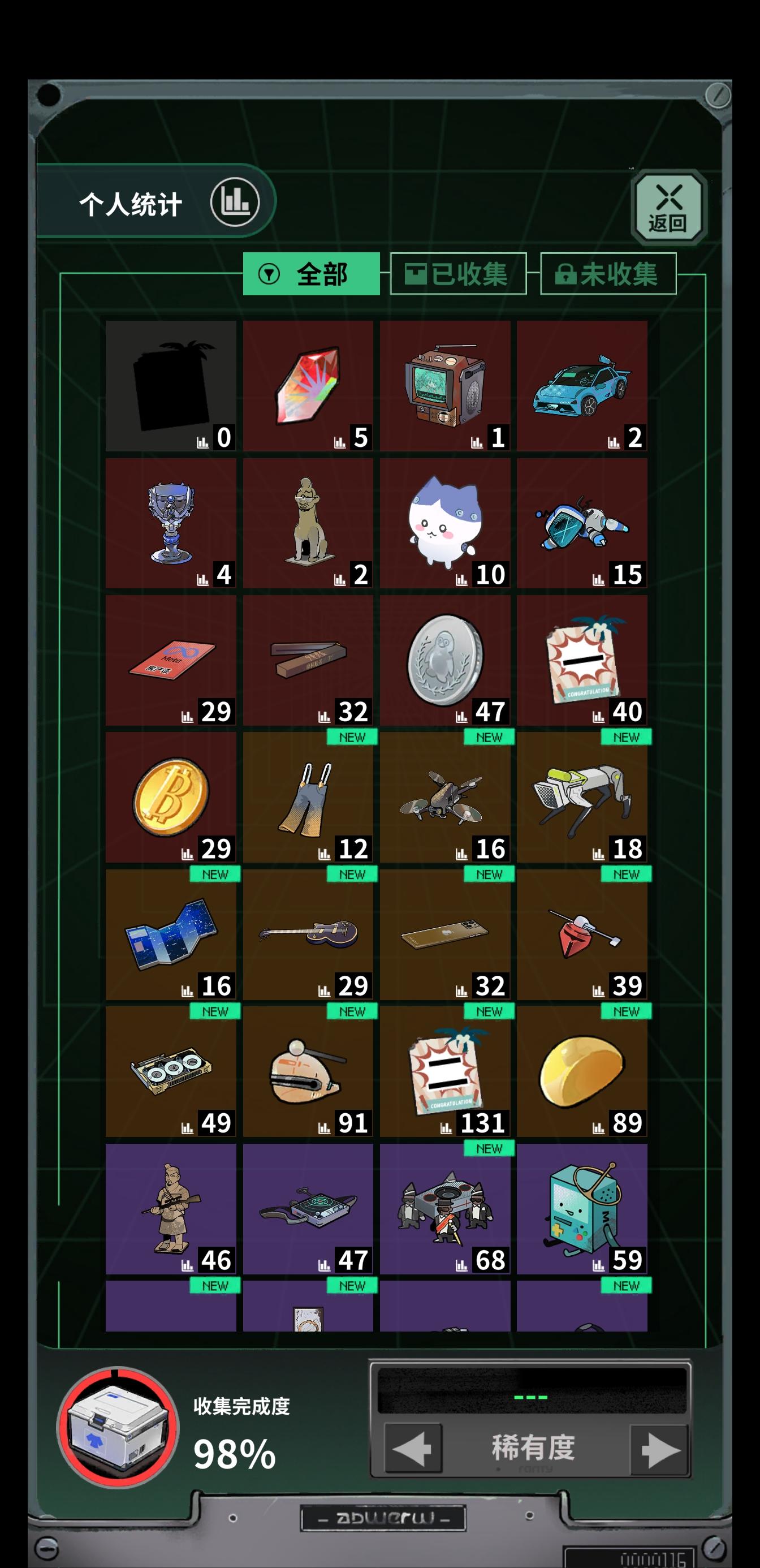 开局进地图,如果出了广告红箱就直接选去红箱的路线(我估计不会有红箱,我刷了十几次都没见到)如果没有就进去随便拿东西,出来把东西全卖了,把A级任务补齐,再进第二天。之后看有没有红箱,没有就随便拿东西,再出来卖了补齐任务,然后接着下一天,一直重复到刷出红箱为止(大概第三或第四天会出)如果没出最欧或者最非就直接重开⚠️(点左上角头像之后见图二右下角有重开一局,我估计很多人都不知道还能重开,顺便提一嘴
