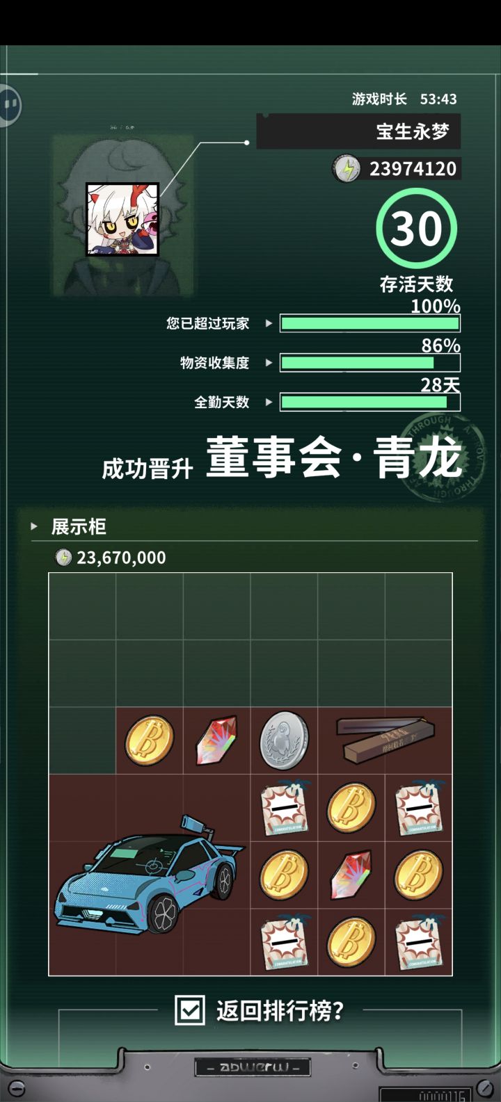 开局进地图,如果出了广告红箱就直接选去红箱的路线(我估计不会有红箱,我刷了十几次都没见到)如果没有就进去随便拿东西,出来把东西全卖了,把A级任务补齐,再进第二天。之后看有没有红箱,没有就随便拿东西,再出来卖了补齐任务,然后接着下一天,一直重复到刷出红箱为止(大概第三或第四天会出)如果没出最欧或者最非就直接重开⚠️(点左上角头像之后见图二右下角有重开一局,我估计很多人都不知道还能重开,顺便提一嘴