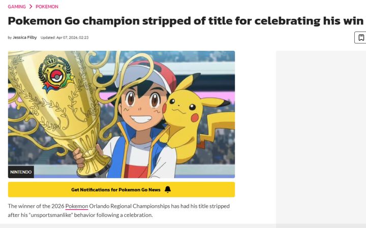 【快讯】宝可梦GO选手因挥拳庆祝被判负