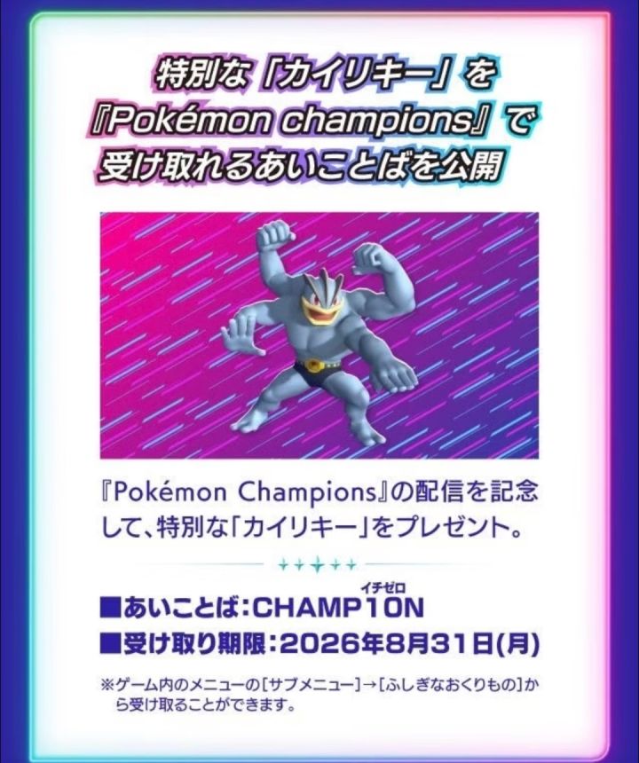 训练家速冲!《宝可梦冠军》现已免费登陆Switch eshop,手机版预计6月上线。即日起至8月31日,输入配信码CHAMP10N即可领取礼物“怪力”!🔥 M-1赛季同步开启:时间:4月8日 - 5月13日 9:59新机制:“赛制M-A”启用,每场战斗仅可进行一次超级进化(4月8日-6月17日期间有效)。📥 领取路径:游戏内【宝可梦冠军】> 子菜单 > 神秘礼物。#今天游戏圈发生了啥 #单