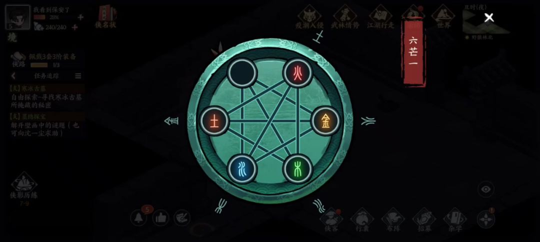 图1处获得蛇笛 龙门渡:先在七侠镇客栈买米酒1个,采集树莓-茯苓,空明可买香烛。 龙门村:准备五个树莓,止血散一个,采集葡萄-井水,与林锐(弓系奖励)切磋,云游僧人(买香烛)身后探查绘画。 龙门村北:支线任务天籁的代价就在入口直对的树那走过去就能触发,采集甘草-松树。 龙门村南:采集松树-棉花。 龙门客栈:准备五个蛇胆,采集精铁矿-甘草,机关宝盒顺序金火水景土景水火金,客栈女老板与马之间