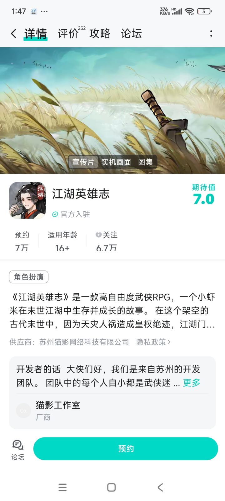 亲爱的少侠:水墨江湖风起云涌,侠义之路待君启程!吾乃诸位江湖路上的知音人芳语,今以剑为笔、血为墨,特传此八百里加急快报 ——✨ 《江湖英雄志》预约正式开启! ✨为庆贺此刻,我们准备了好礼相赠,诚邀各位少侠共绘江湖画卷!🎁 预约福利抽奖人数:五名福利:京东卡100元参与方式:预约游戏,并在此贴文下方评论并带上你的预约截图即可参与抽奖※注意留下属于你的印记防止盗图~ 活动时间: