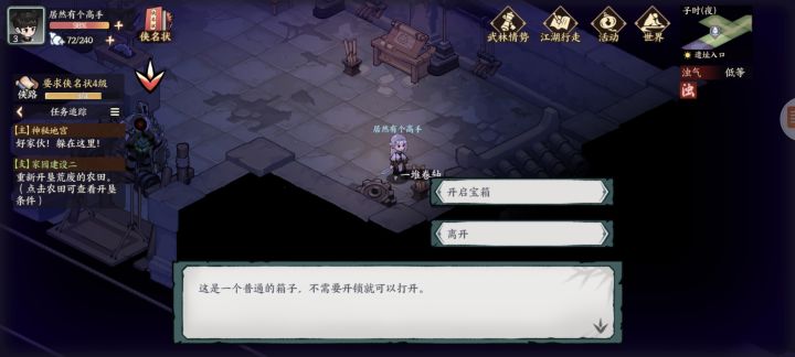 先说结论,未来可期。一,剧情塑造(3/5)从文字表现力来看,文案组有扎实的文学功底,在环境,对话描写等方面表现优异。从整体来说,文案组在表达情感时,并没有做到冷静和客观,使得整个剧情莫名其妙。例如在游戏开头,玩家初入游戏,还未了解故事角色时,突然加入 婉儿爷被拐将军墓,无垢体发威浊气除 。企图用婉儿爷身死剧情,引出天下大乱的背景。但玩家还未认识角色,婉儿爷对于玩家来说是个陌生人,剧情中情感的