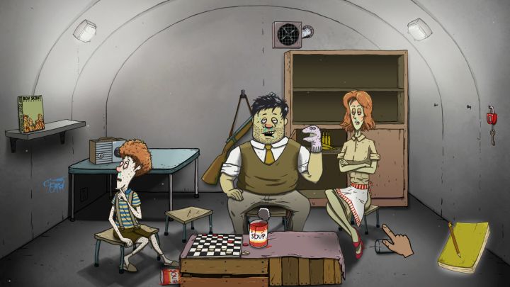 搜集物品结束后一定要在核爆前进入避难所,否则直接失败。进入避难所后,即开始生存玩法。时间以天为单位,每天都需要给家庭成员分配水和罐头,有时候会有随机事件出现,需要玩家做出决定,这会影响到后续的剧情发展。生存玩法需要玩家做的事情不多,除了分配水和罐头之外就是看看每天有没有随机事件,有的话就根据当时的情况处理一下,要考虑到家庭成员的健康状态、物资剩余状态等因素,尽可能的生存更长时间以及努力完成游戏目标。以上内容包括游戏目标都会出现在日记本中,游戏目标的达成有时候需要具有特定的物品才行,比如和外界取得联系,如果你一开始就没有把收音机带进来的话完成起来恐怕就够呛。但也不是完全没可能,因为随机事件有时候会遇到其他避难者,他们有时候会给玩家带来雪中送炭的物资。生存玩法是策略性比较高的玩法,和之前拼手速拼眼力的搜集玩法有着完全不同的风格,这也为玩家带来了两种截然不同的游戏体验。