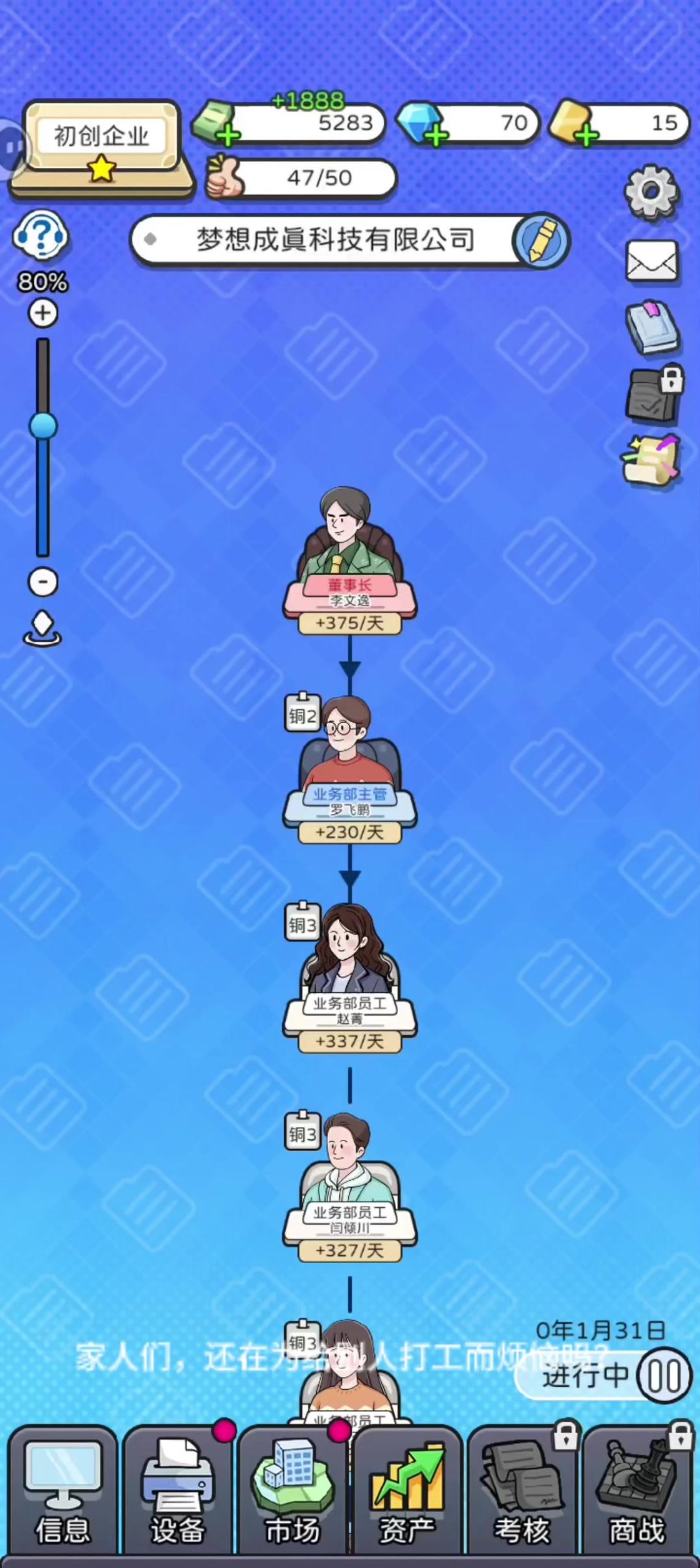 我做老板心得:对员工好,赚取的钱多奖励员工!真的好好玩!玩了半个小时都出不来!#董事长模拟器