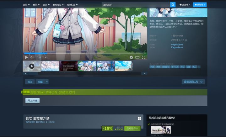 《海蓝星之梦》现已开启摩点众筹!(虽然说实际上已经过去一个月了)欢迎大家点击下列链接帮主包拉点经费(直言不讳)以下是游戏介绍:欢迎各位到steam商店添加一个愿望单~(https://store.steampowered.com/app/3376290/_/) 关于游戏介绍将采取自问自答的模式,问就是日常对话剧情写多了()问:为什么会想到这个名字?答:KEY社有个游戏叫星之梦另外这个名字
