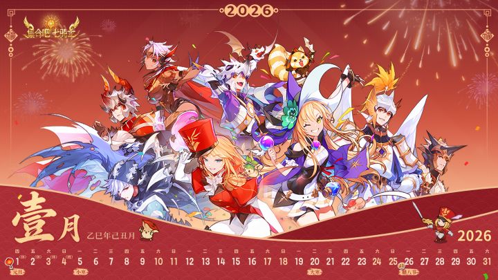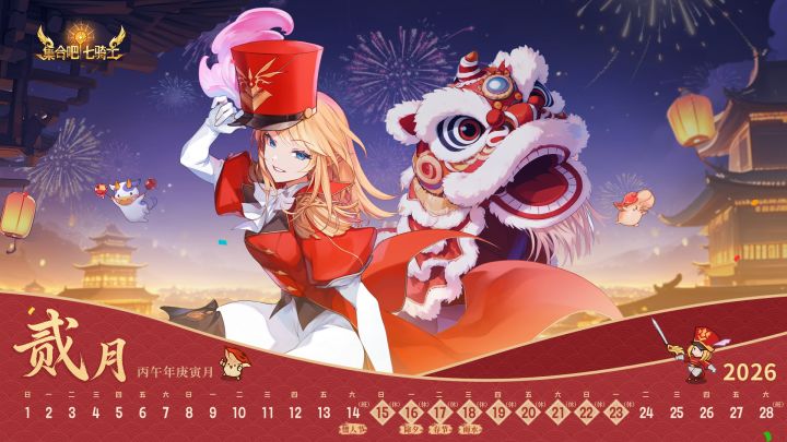 岁序更迭,华章日新。当灯笼点亮主城的屋檐,七骑士也换上了蕴含祥瑞的新装,与各位团长共同迎接丙午马年新春的到来。二月,是寒冬的终章,更是温暖与团聚的序曲。旧岁的冒险故事写满勋章,新春的征程已在灯笼火影中铺展。感谢又一年的并肩前行。让我们暂放兵刃,共举杯盏,为情谊,也为即将共赴的全新挑战。愿这份融合了传统年味与骑士精神的新春月历,为您标记每一个重要日子,陪伴您度过一个充满喜悦与期待的农历新年。-