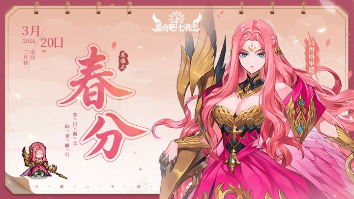 《春秋繁露》有云:“春分者,阴阳相半也,故昼夜均而寒暑平。”这一天,白昼与黑夜等长,寒意与暖意交织。春分之后,白日渐长,光明愈盛。正如七骑士的征程,每一次调整都是为了迎接更耀眼的高光时刻。在这个向光而行的节气里,愿各位团长如渐长的白昼,每一份努力都收获更多可能,与伙伴并肩奔赴新的战场。----------------------------------经典回归,七骑士正统续作,轻松放置再