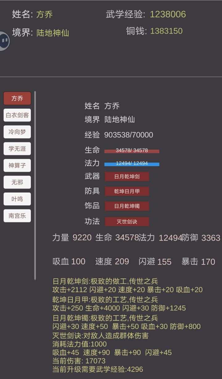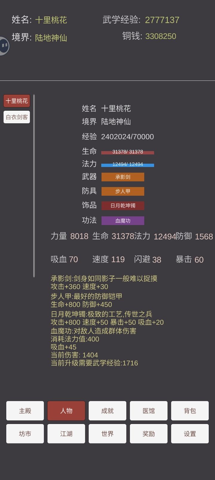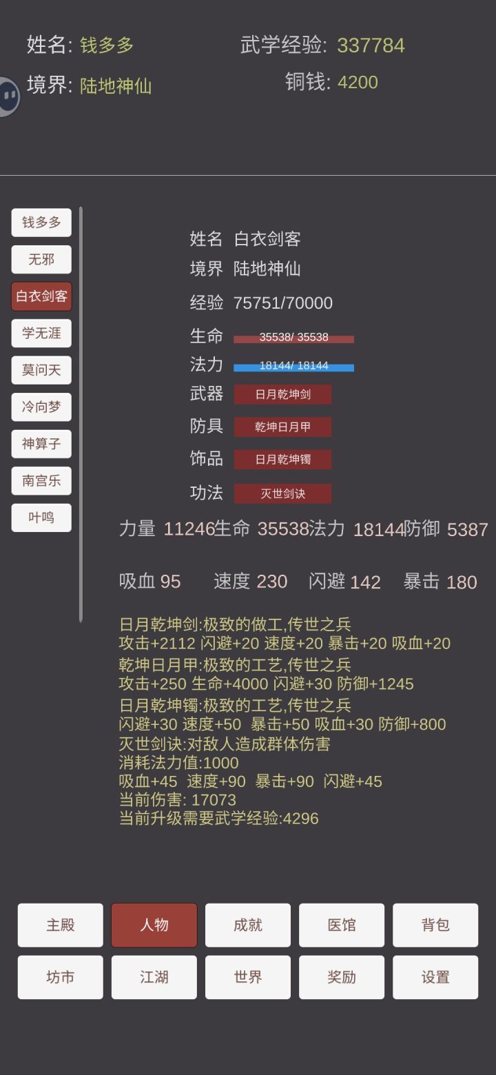 刷钱方式:扫荡武功:吸血的那本