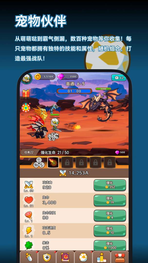 - 宠物伙伴: 从萌萌哒到霸气侧漏,数百种宠物等你收集!每只宠物都拥有独特的技能和属性,随机组合,打造最强战队!